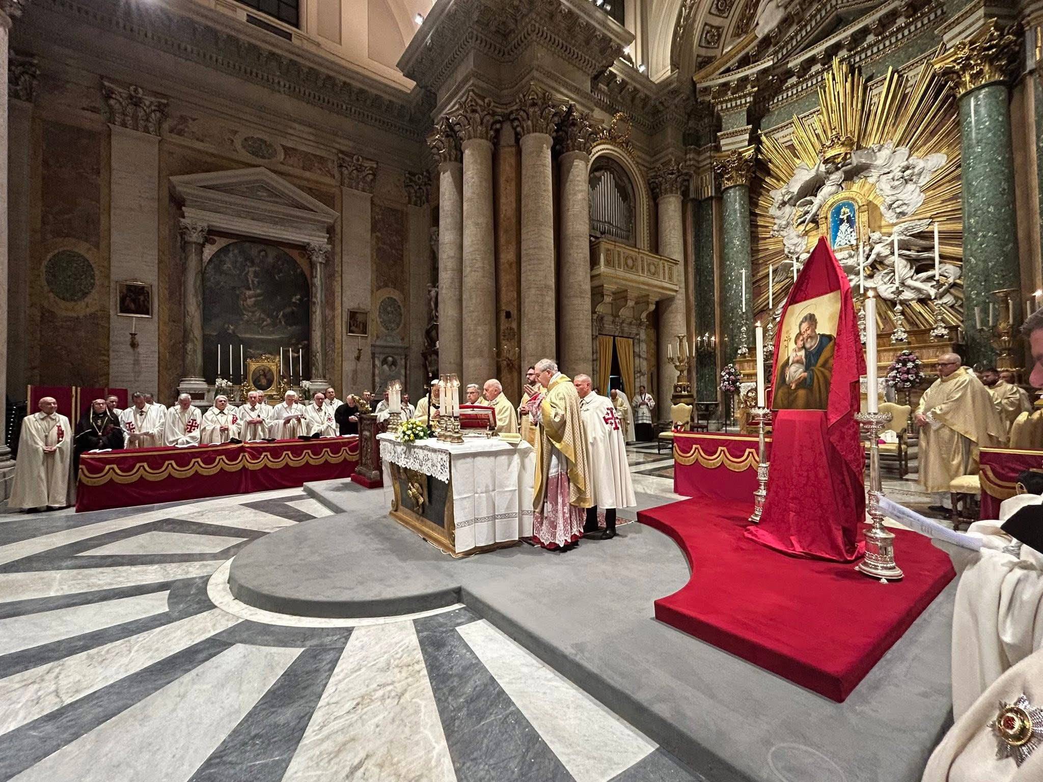 El cardenal Fernando Filoni, Gran Maestre de la Orden del Santo Sepulcro de Jerusalén, ha celebrado el 25.º aniversario de su ordenación episcopal en la iglesia de San Salvatore in Lauro, en Roma, en presencia del Gobernador General, el embajador Leonardo Visconti di Modrone, del asesor de la Orden, Mons. Tommaso Caputo, y de numerosos invitados, entre los que se encontraban los Caballeros y Damas de la Lugartenencia para Italia Central. Con motivo de este aniversario, les presentamos una extensa entrevista con Su Eminencia, realizada por el Servicio de Comunicación del Gran Magisterio de la Orden, en la que se recuerda su entrega y compromiso de vida al servicio de la Iglesia universal